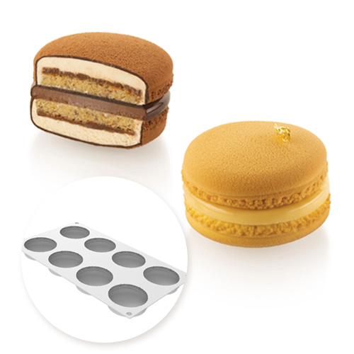 첫 번째 몰드로는 정교한 쉐모양을 구현할 수 있으며, 두 번째 틀을 사용하면 마카롱 필링 부분의 모양을 만들 수 있습니다.