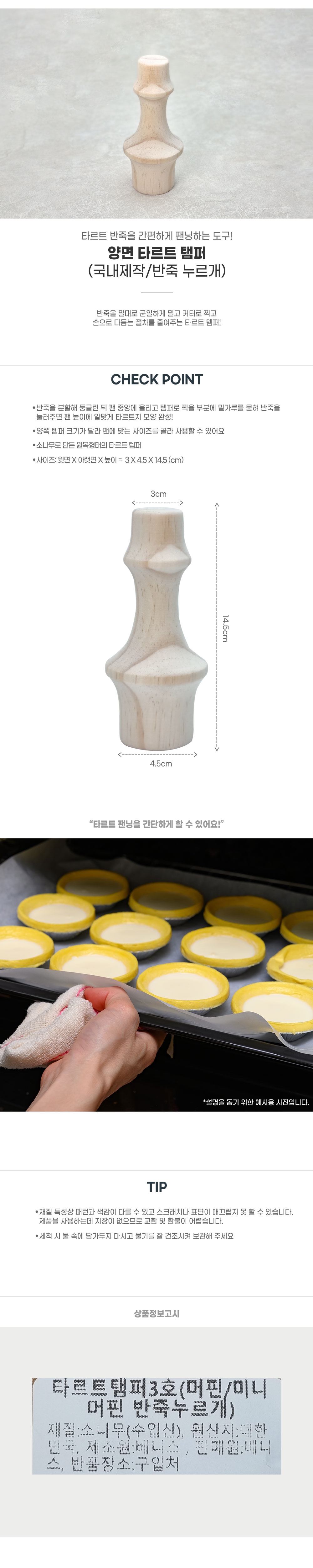 양면 타르트 탬퍼 (국산 나무탬퍼/반죽 누르개/3*4.5*14.5cm)