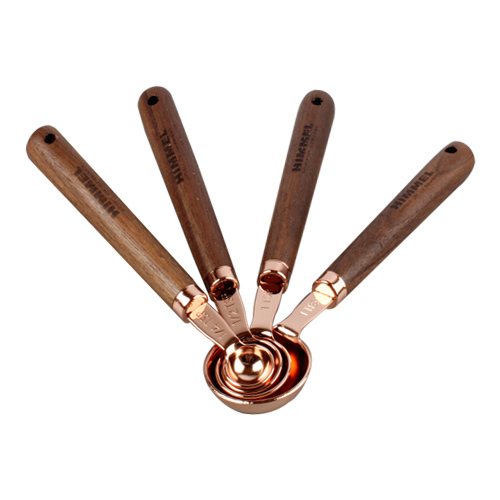 코퍼 계량스푼 세트(4p/로즈골드/우드핸들)