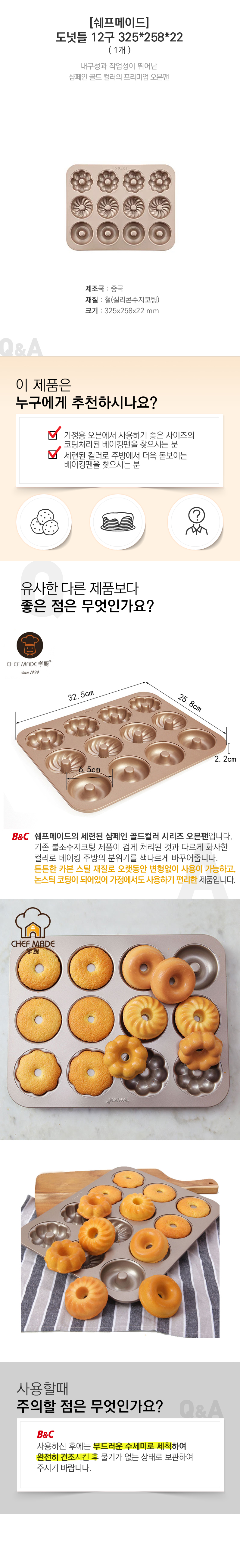 품명 및 모델명 [쉐프메이드]3가지모양 도넛틀 12구 325*258*22