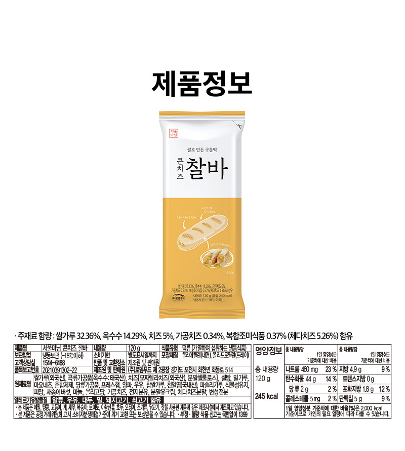 | 제품명 | [서울마님]오감찰바(콘치즈/80개입/냉동) |