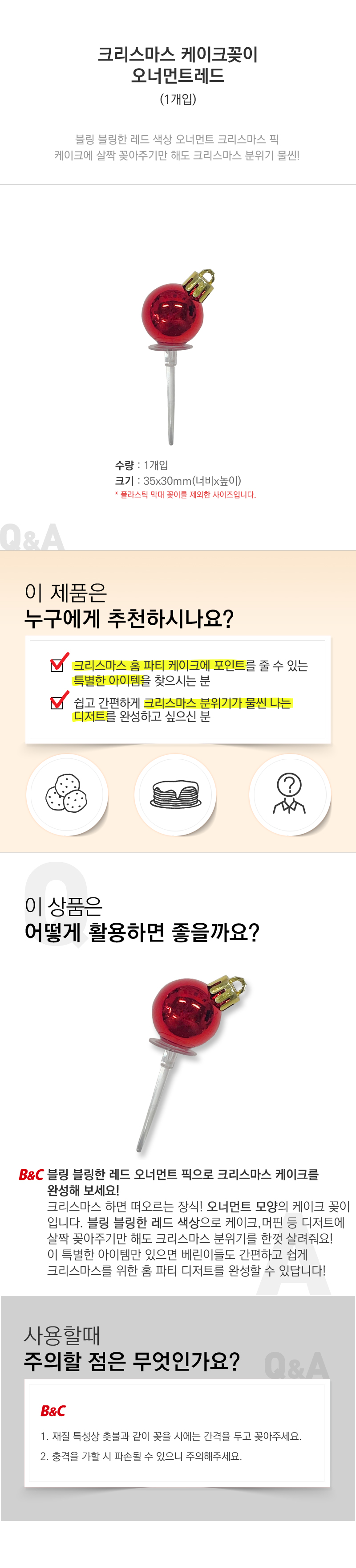 | 품명 및 모델명 | 크리스마스 케이크꽂이-오너먼트레드 |