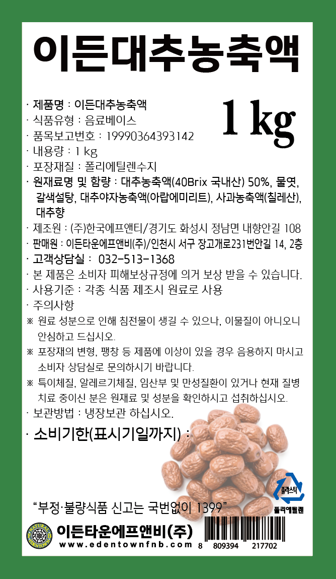 제품명 | [이든타운]대추농축액50%(1kg/약식/대추차) |