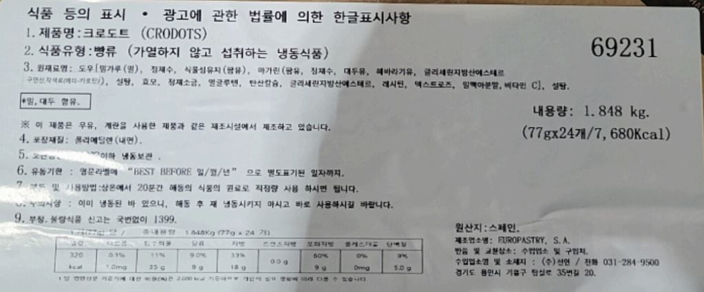 | 제품명 | 크로도트(77g*24ea/크로넛) |