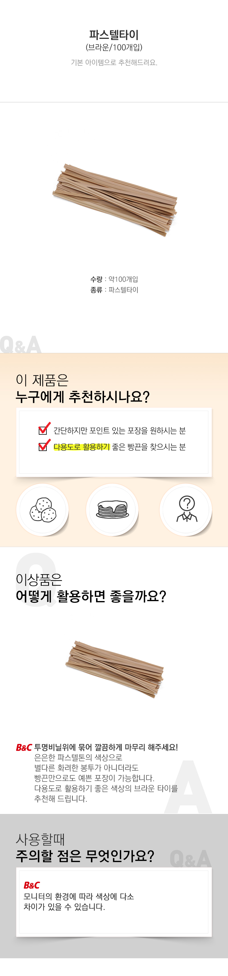 | 품명 및 모델명 | 파스텔타이-브라운100개 내외 |