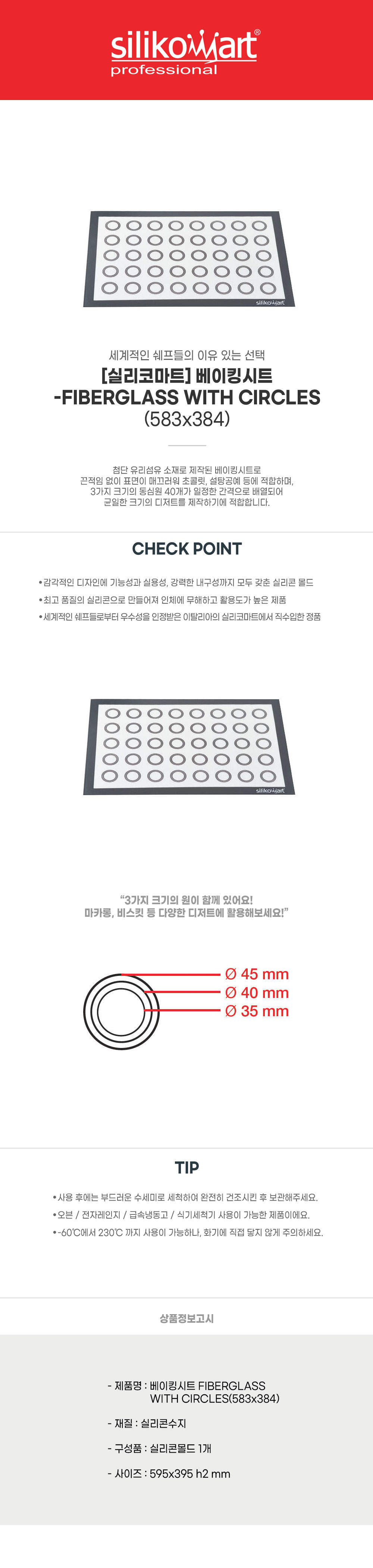 44418 [실리코마트]베이킹시트-FIBERGLASS WITH CIRCLES(583x384) 46800
