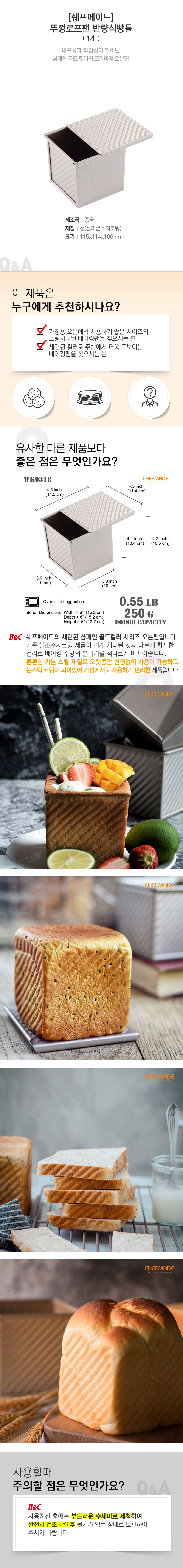 | 품명 및 모델명 | [쉐프메이드]뚜껑로프팬 반량식빵틀 115*114*106 |