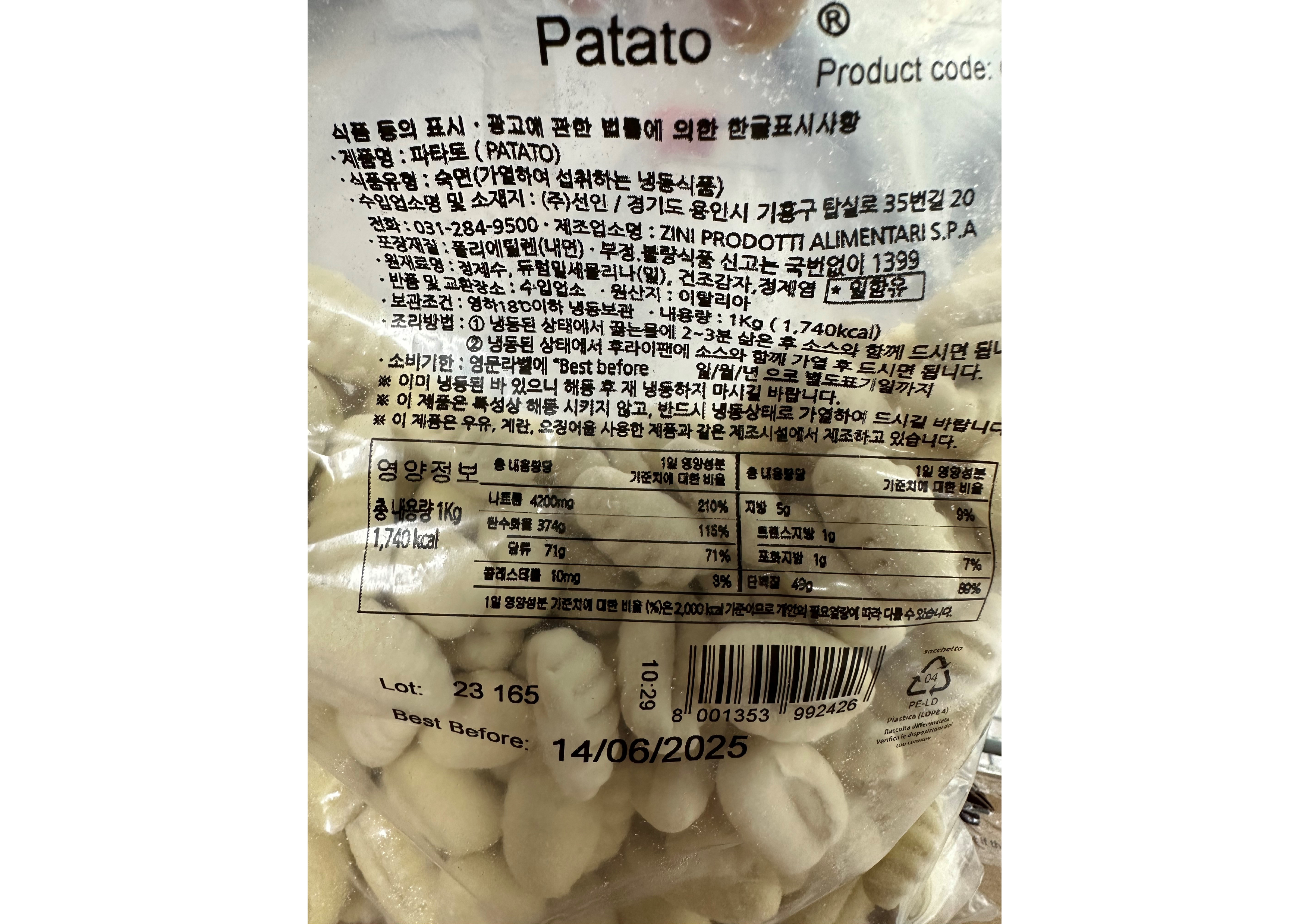 | 제품명 | [주문배송]파타토(1kg/감자뇨끼) |
