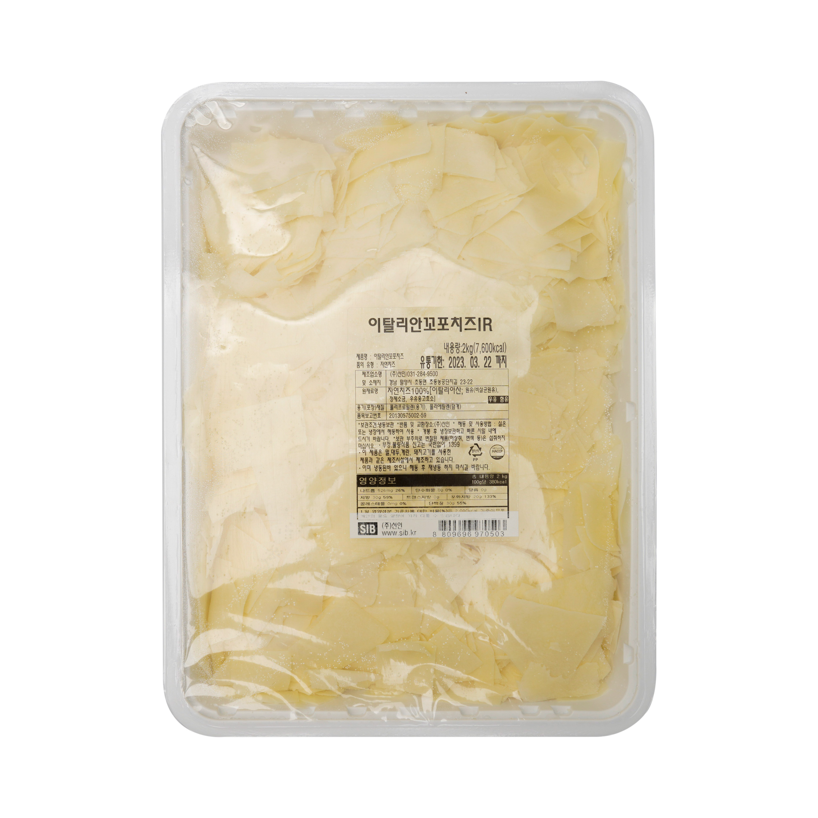 이탈리안 하드치즈를 대패로 밀어 놓은 것 같은 슬라이스입니다. 약 0.7 mm 두께로 2kg 포장 됩니다.