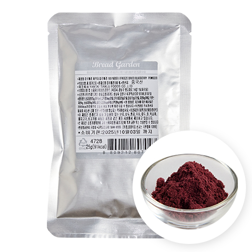 동결건조 시킨 블루베리를 갈아 만든 제품으로 영양성분 파괴가 거의 없고 색과 맛을 그대로 유지하는 것이 특징입니다.