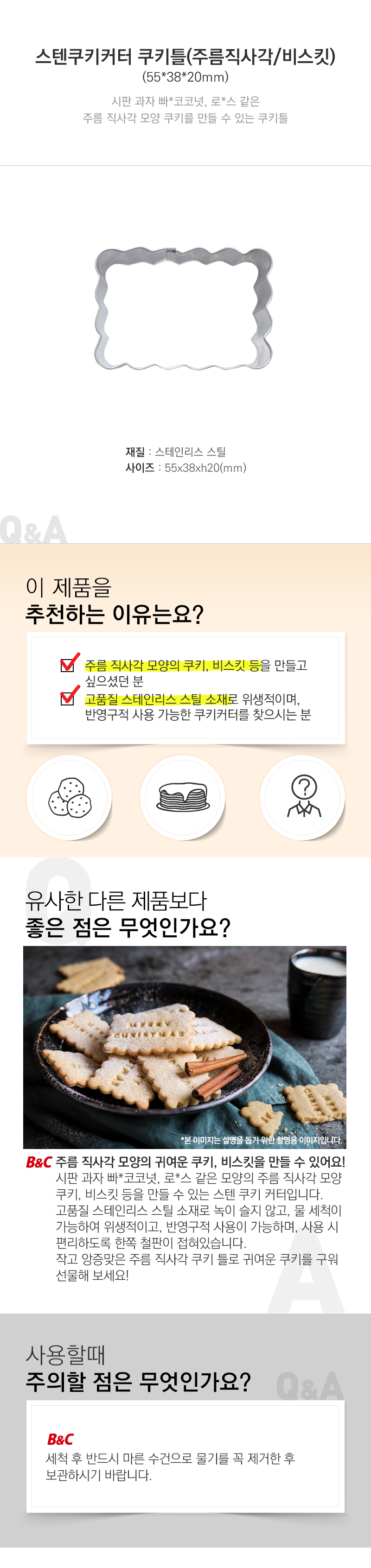 품명 및 모델명 스텐쿠키커터 쿠키틀(주름직사각/비스킷)