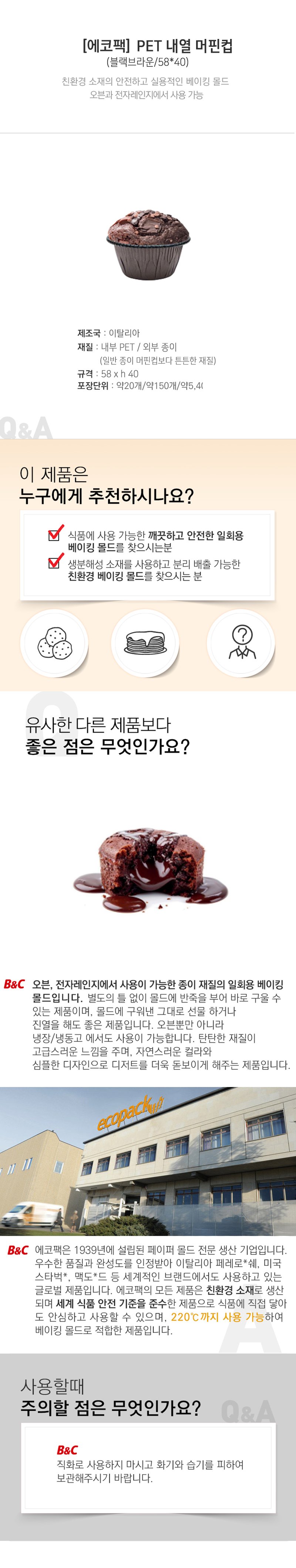 [에코팩]PET 내열 머핀컵 58*40H BROWN-BLACK (96개입X 18줄)