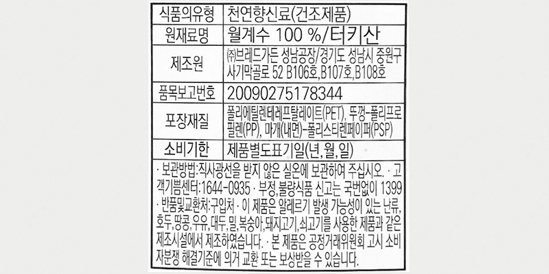 | 소비자상담 관련 전화번호 | ㈜브레드가든 / 1644-0935 |