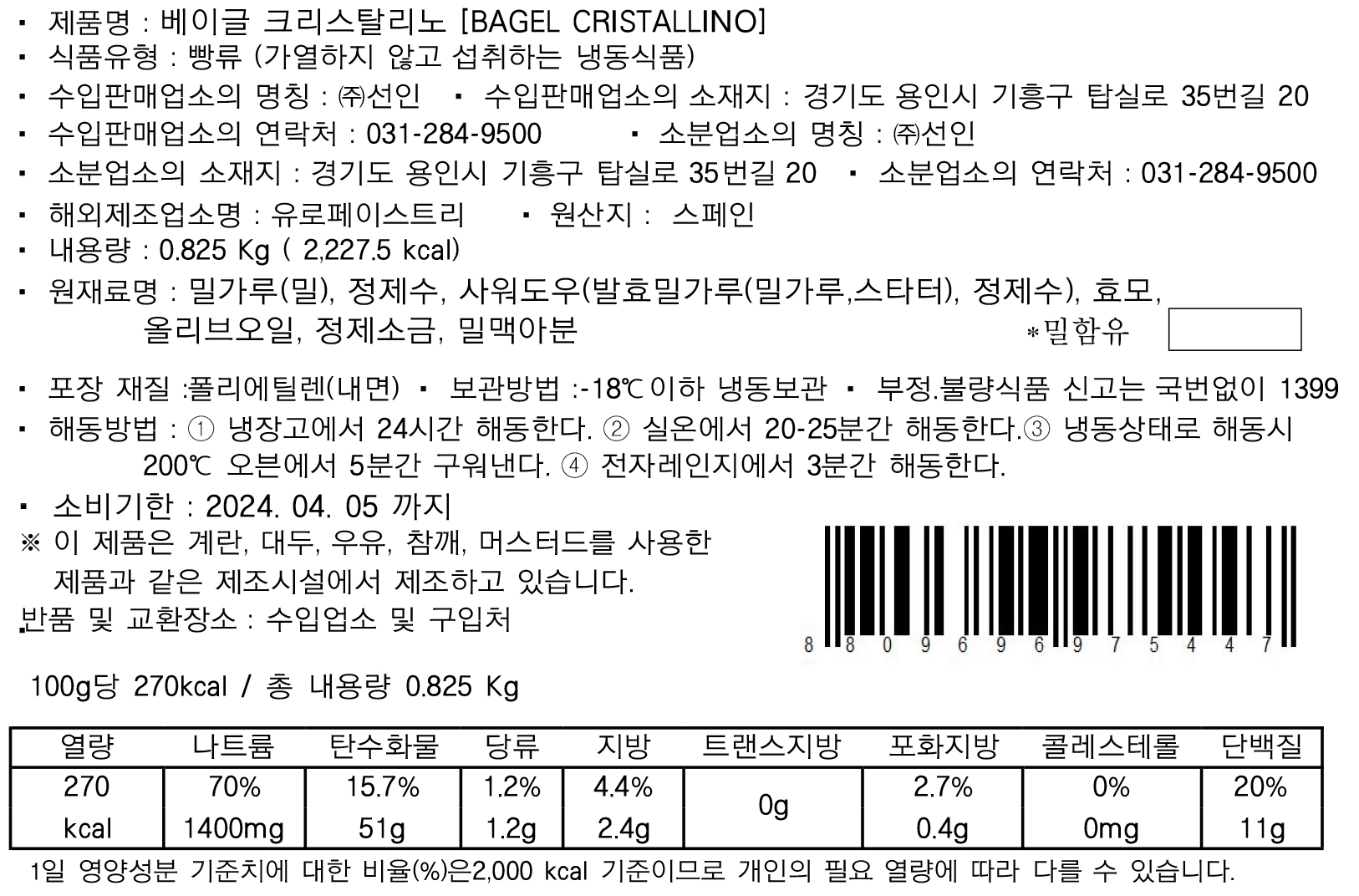 | 소비자상담 관련 전화번호 | ㈜브레드가든 / 1644-0935 |