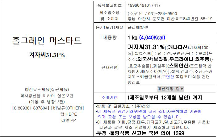 | 제품명 | 홀그레인머스타드(1kg/겨자씨) |
